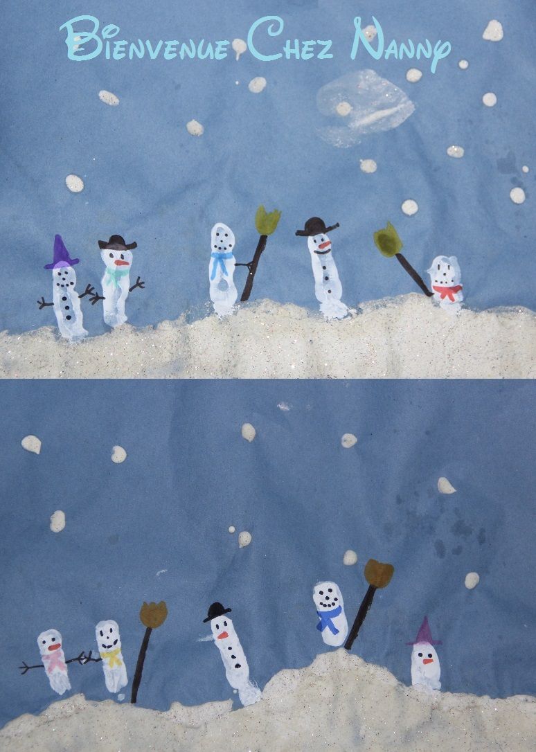 Aujourd'hui j'ai pris leurs empreintes de doigts afin de faire une famille de bonhomme de neige.