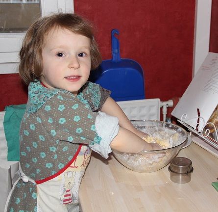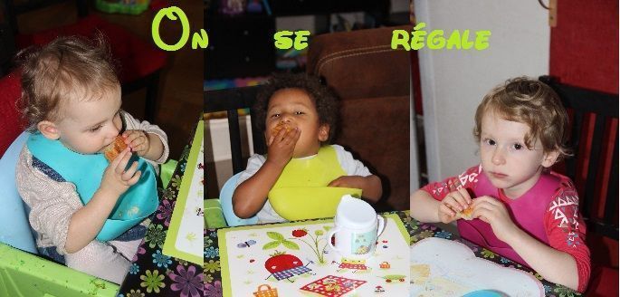 J'installe une nappe sous la petite table de jeux. Le temps d'aller au cellier pour récupérer les moules et que je me retourne, que déjà ma fine équipe est installée autour de la table en se demandant ce que l'on va faire : bande de petits curieux !