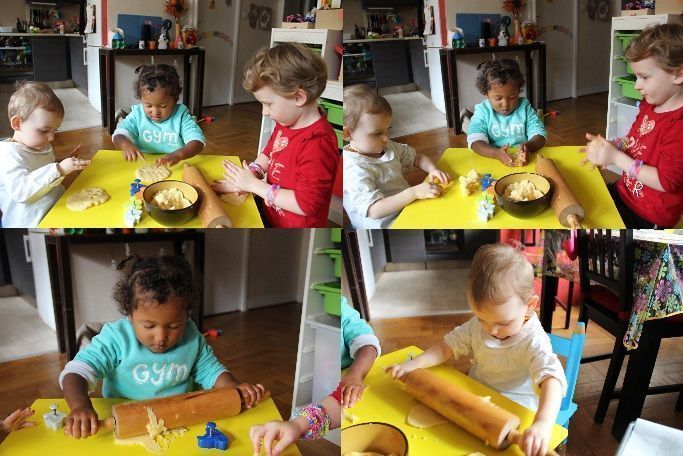 Par contre le hic, ils ont tellement malaxé la pâte qu'elle s'est réchauffée et impossible de faire mes moules. Donc je les laisse finir de s'amuser.