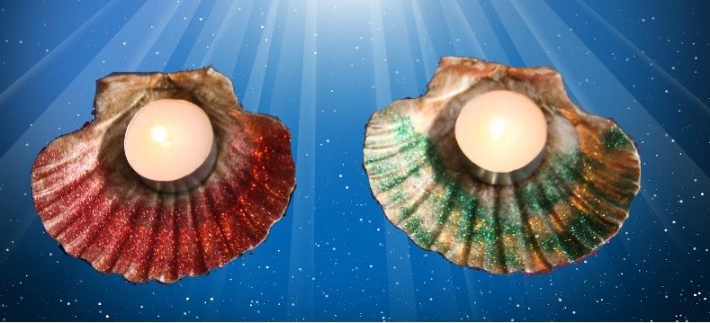 Voici notre 1ère création réalisée à l'association Zébulon. Ma tribu a réalisé un luminon pour le 8 décembre à l'aide de coquilles st Jacques. Ma tribu a peint sa coquille avec du doré et avant que la peinture soit entièrement sèche, elle a saupoudré de paillettes, Diego a choisi les vertes et Manon les rouges. J'ai fait un socle à base de pâte autodurcissante afin que la coquille soit stable. Trop fière de ma tribu !