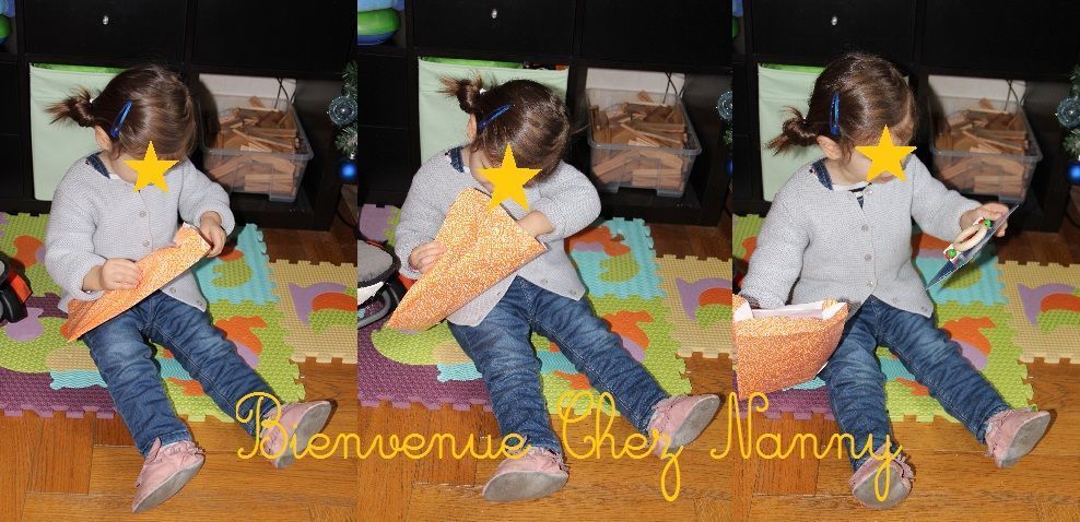Lou ne se pose pas de question et ouvre les cadeaux. Elle prononce des "ho" puis "Nanny, peut ouvrir !" Bon je crois que ça lui plait.
